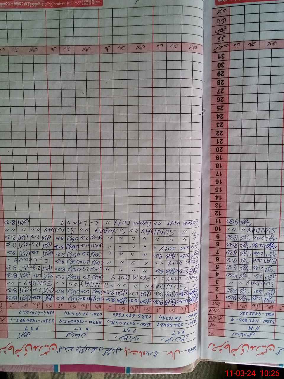 | 35**** | Ri**** Al**** | 1 | 1 | 0 | 0 | 0 | 0 | 0 | 0 | 0 | 0 | 0 | Exam Duty |