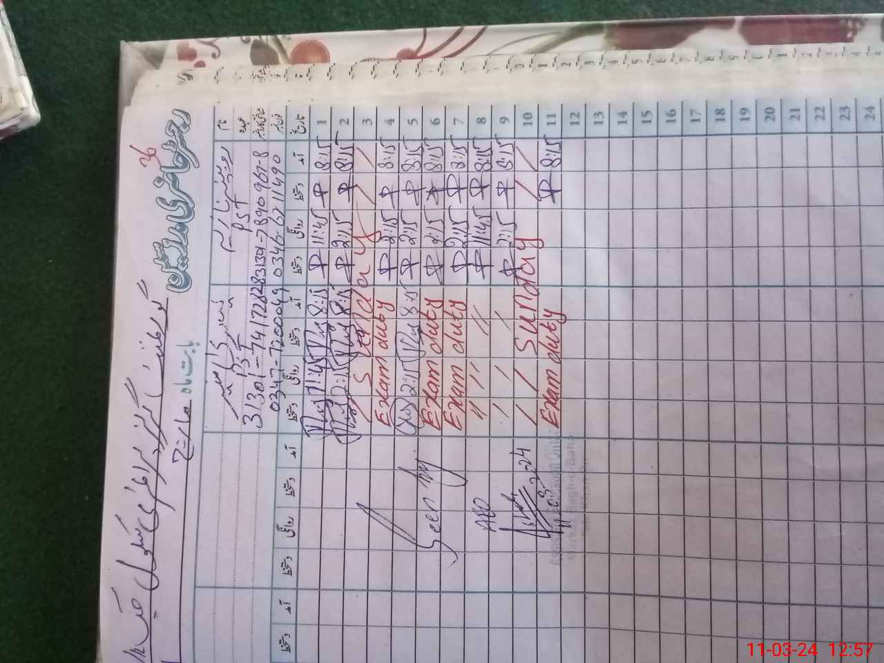 | Leave | Duty | Absent | Maternity | Medical | Ex- Pak |