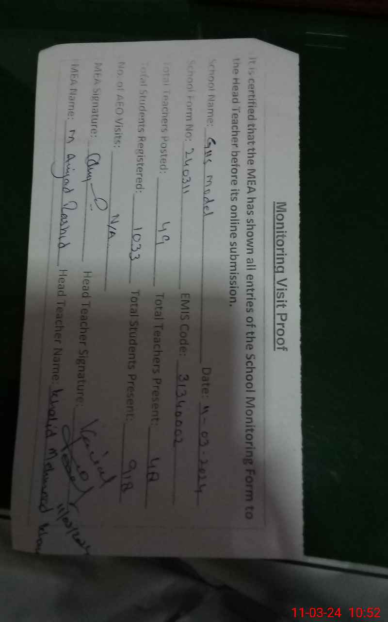 | EMIS Code: 31340002 | Name of School: GHS MODEL | |||