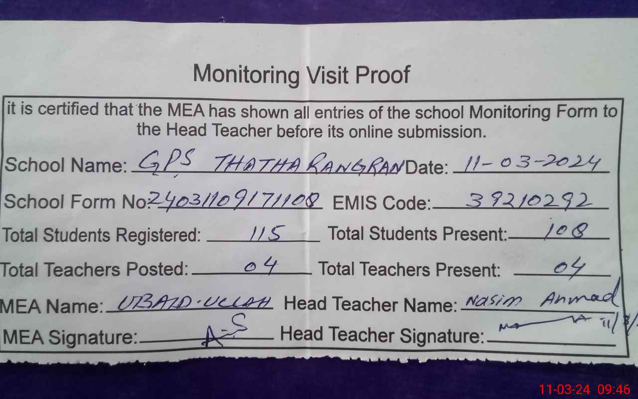 | EMIS Code: 39210292 | Name of School: GPS THATHAI RANGRAN P/O CHAK BEDI PAPATTAN | |||