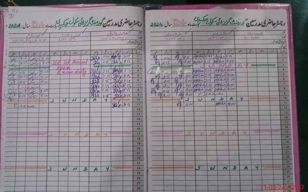 | 36**** | Na**** | 1 | 0 | 7 | 0 | 0 | 0 | 0 | 0 | 0 | 0 | Exam Duty | |