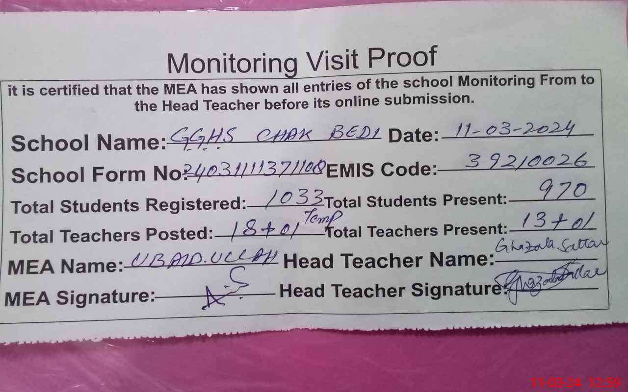 | EMIS Code: 39210026 | Name of School: GGHS CHAK BEDI | |||