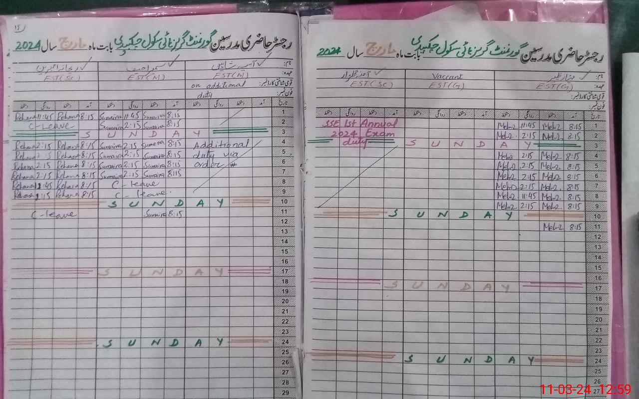 | CNIC | Full Name | Designation | R/C | Absence During Last Calender Month |