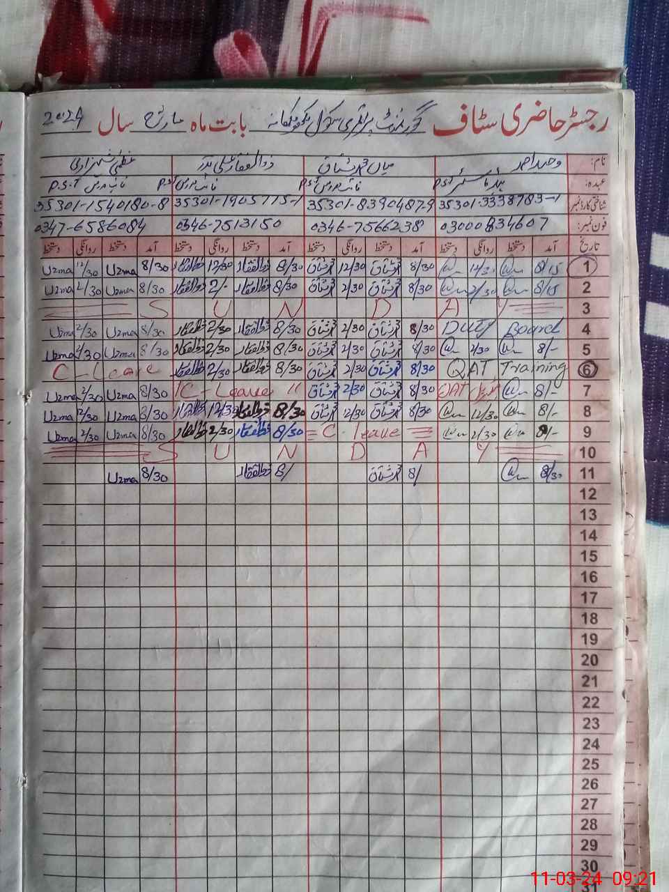 | Leave | Duty | Absent | Maternity | Medical | Ex- Pak |