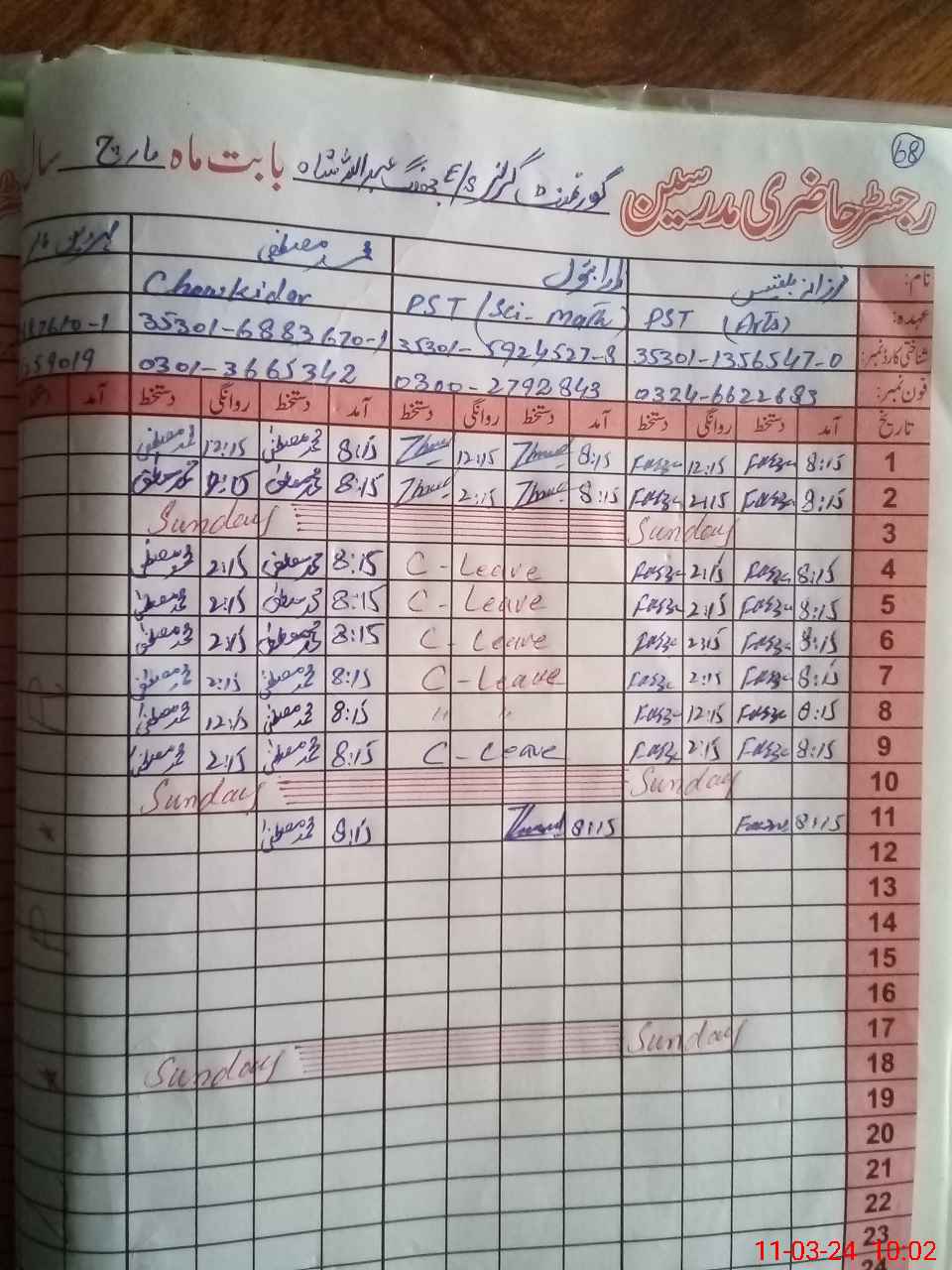 | Name: Fa**** Ba**** Designation: (School Headmaster's/Headmistress's) PST Phone/Cell Number: 03**** |