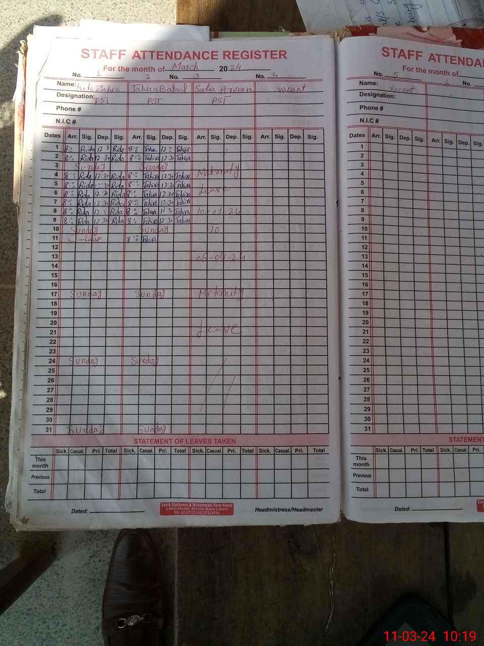 | 33**** | Sa**** Pa**** | PST | Regular | 29 | 0 | 0 | 29 | 0 | 0 | 0 | 0 | 0 | Maternity |