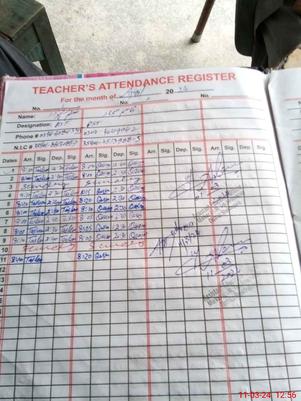 | Name: TA**** SH**** Designation: (School Headmaster's/Headmistress's) ESE ARTS Phone/Cell Number: 03**** |