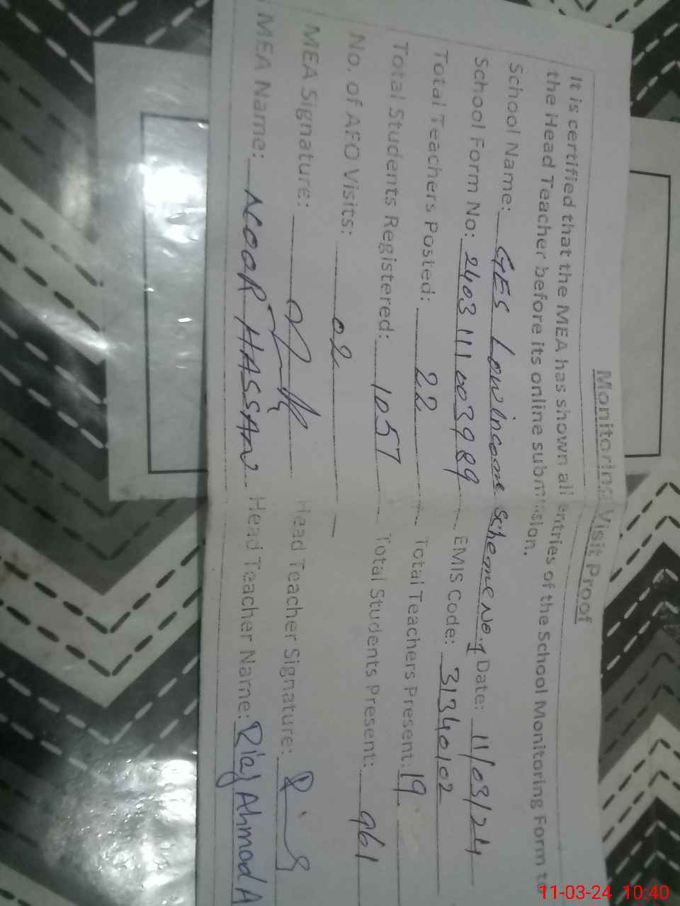 | Certified that this School was Inspected by the Undersigned MEA/DMO Today and the Information Stated Above is as Per Record. | |||||