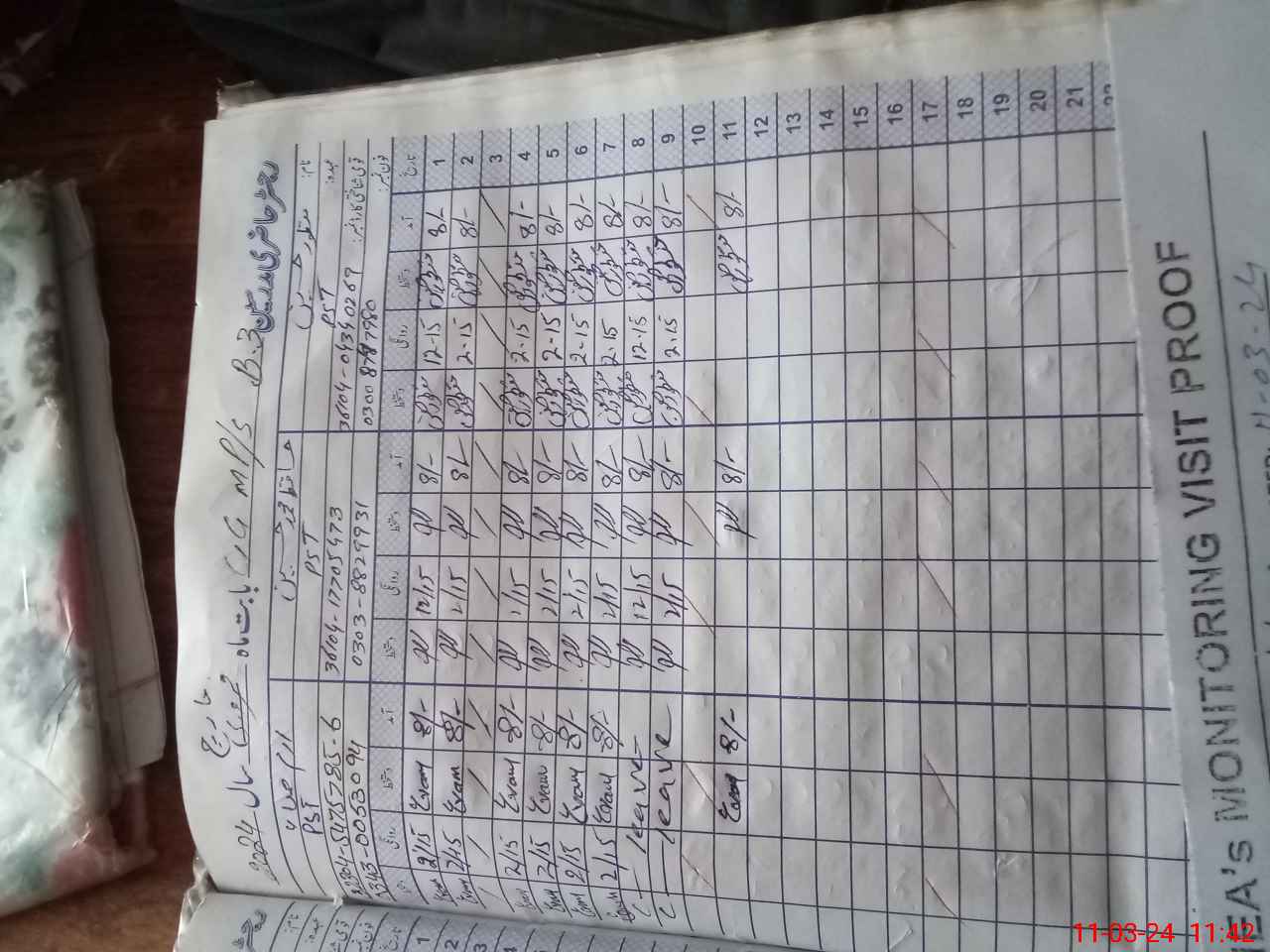 | Monitoring Date: 11-03-2024 | Start Time: 11-03-2024 11:02 AM | End Time: 11-03-2024 11:51 AM | Name of MEA: Kh**** Me**** | |
