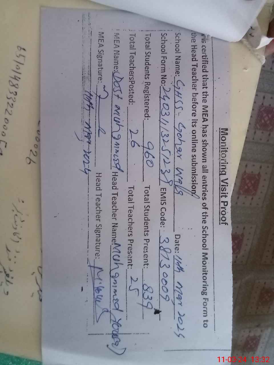 | EMIS Code: 38130009 | Name of School: GHSS GOHAR WALA | |||