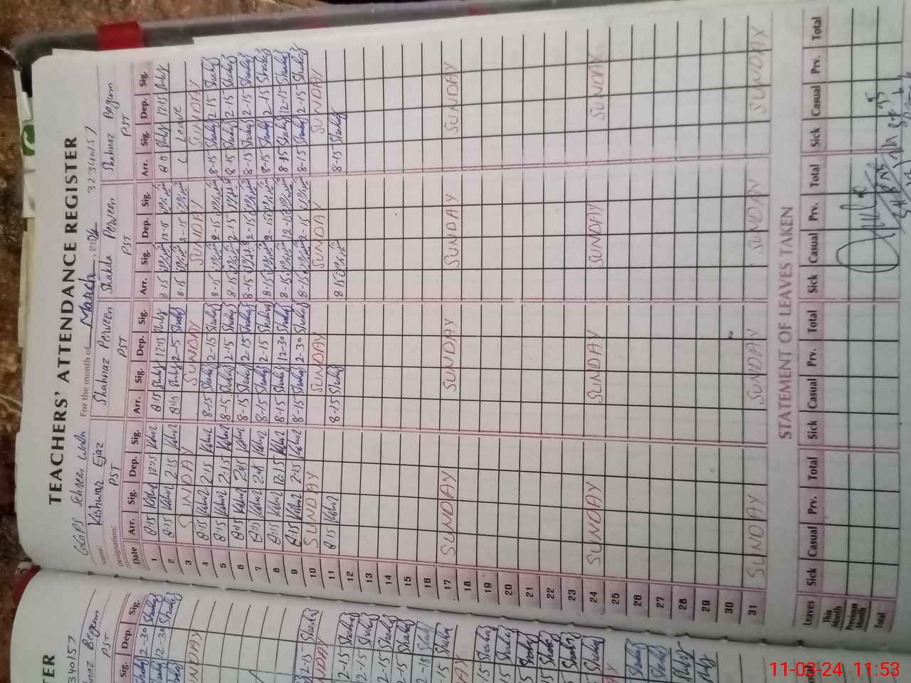 | CNIC | Full Name | Designation | R/C | Absence During Last Calender Month |