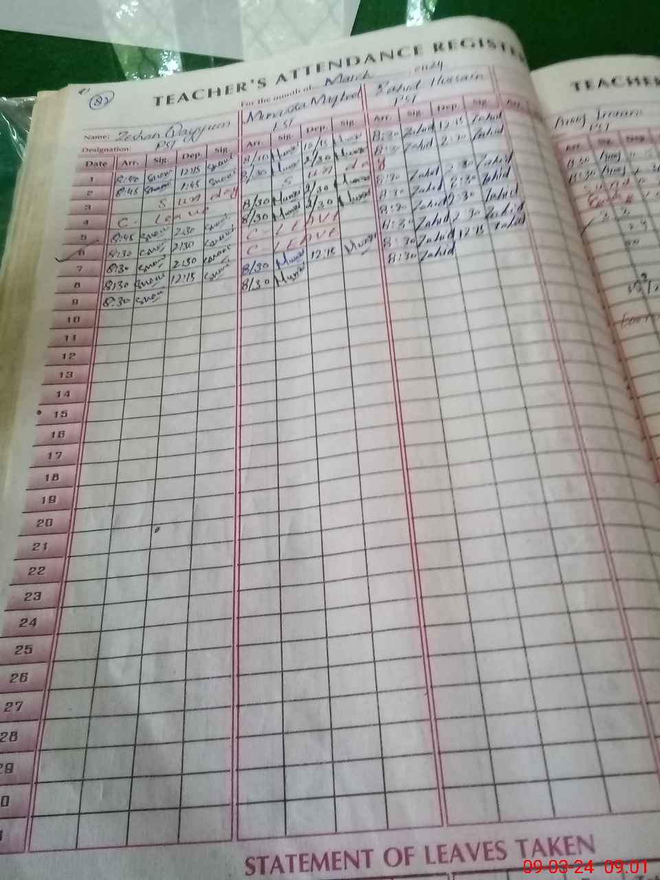 | Name: Ze**** Qa**** Designation: (School Headmaster's/Headmistress's) PST Phone/Cell Number: 03**** |