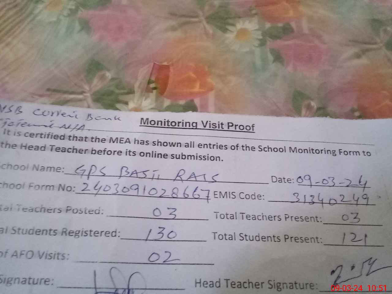 | EMIS Code: 31340249 | Name of School: GPS BASTI RAIS | |||
