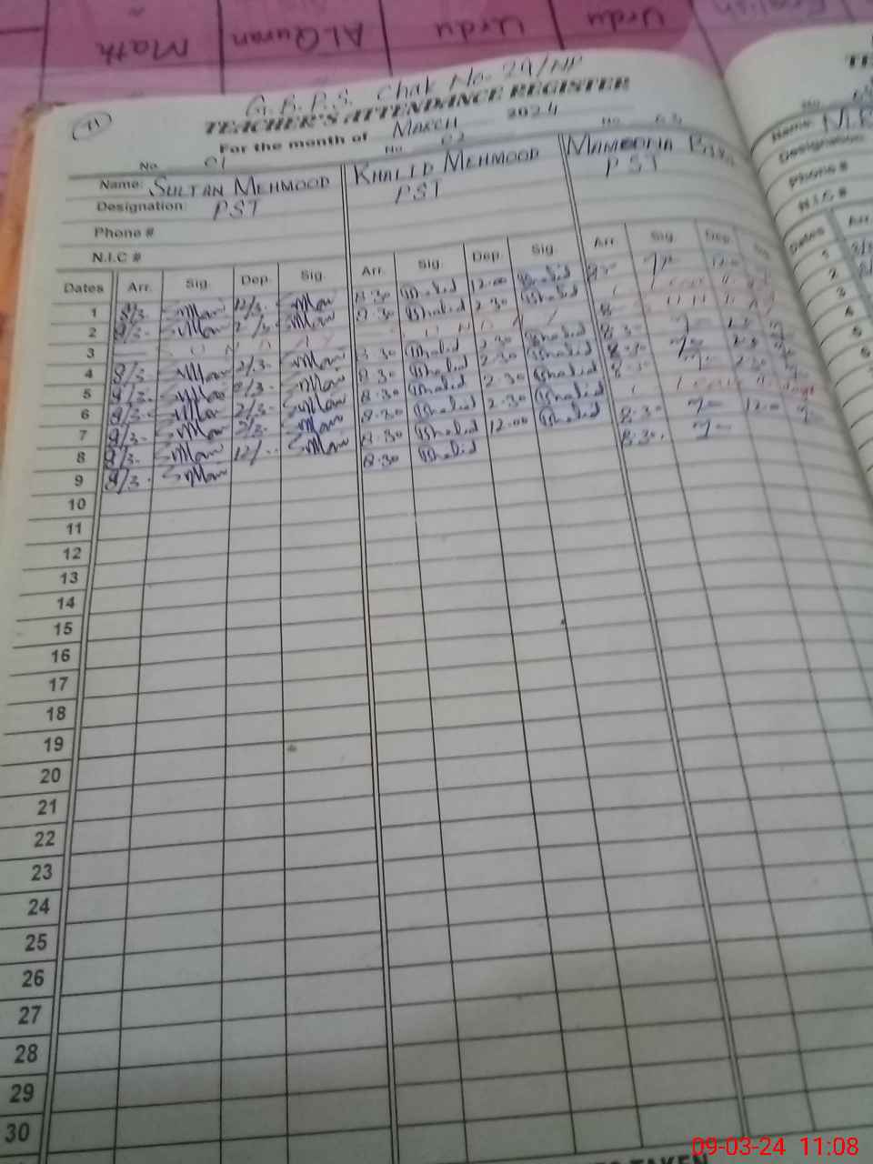 | Name: MRa**** Designation: (School Headmaster's/Headmistress's) PST/PTC/JV Phone/Cell Number: 03**** |