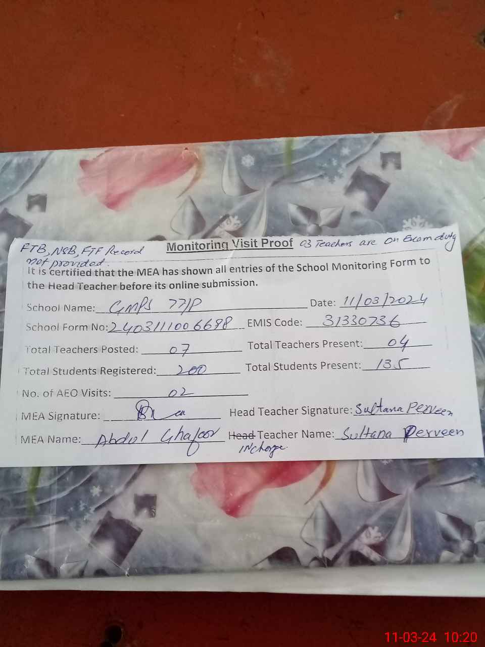 | EMIS Code: 31330736 | Name of School: GMPS CHAK 77/P | |||
