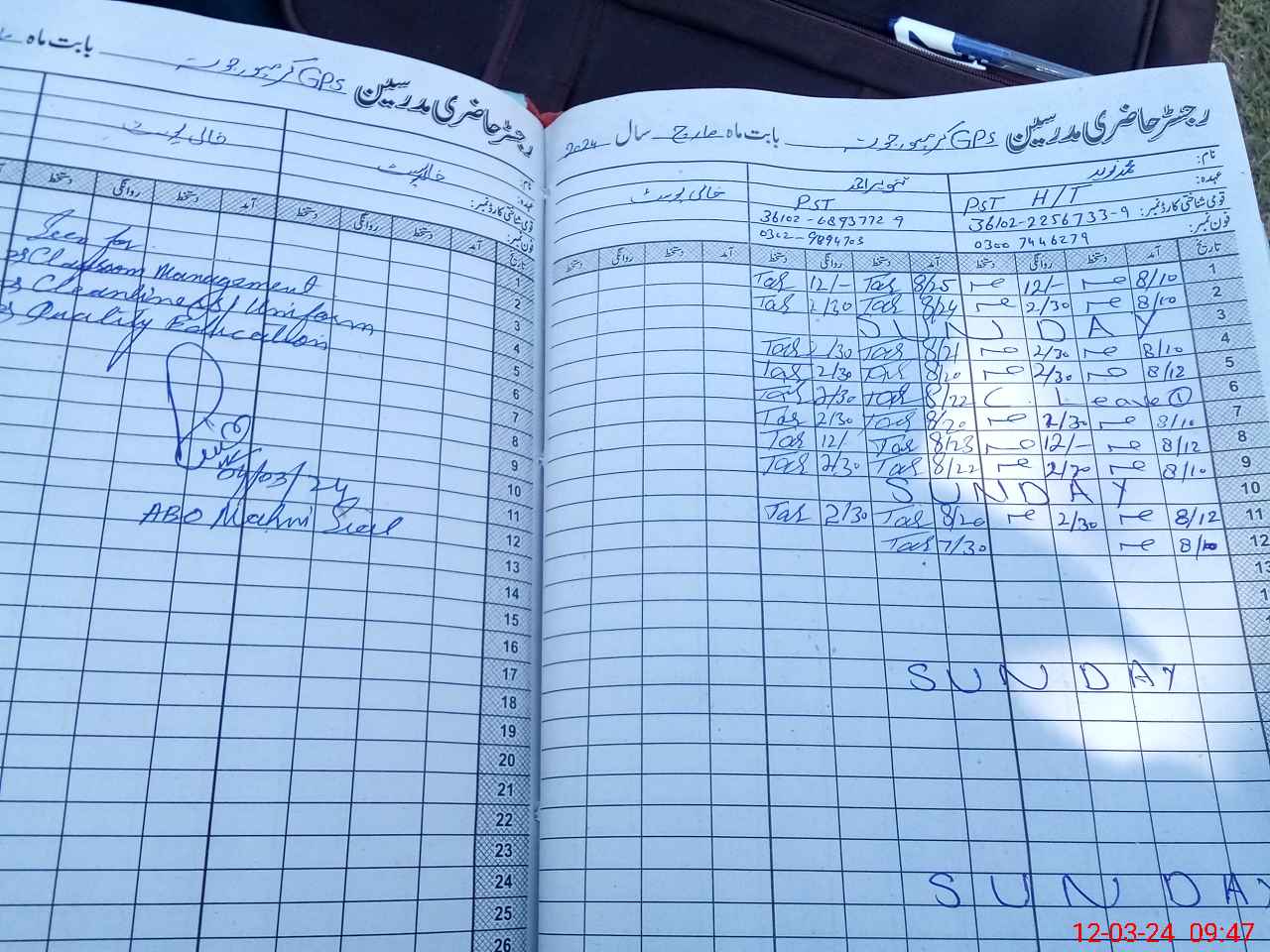 | Name: Mu**** Na**** Designation: (School Headmaster's/Headmistress's) PST Phone/Cell Number: 03**** |