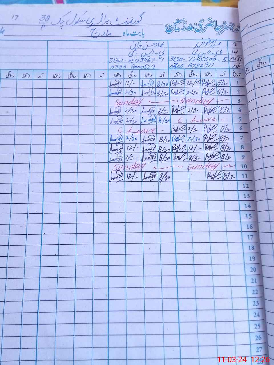 | Name: AB**** RI**** Designation: (School Headmaster's/Headmistress's) PST Phone/Cell Number: 03**** |