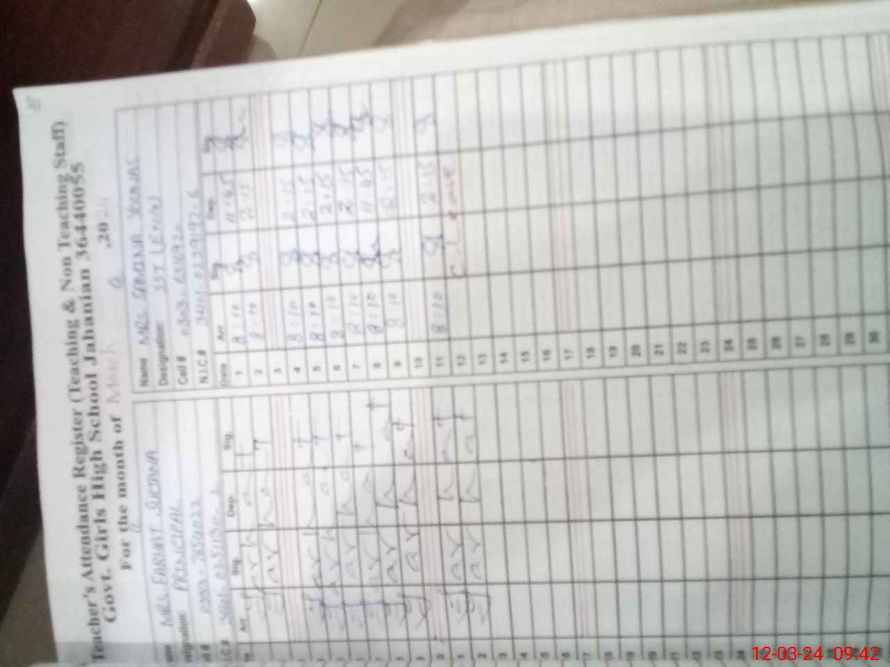| Name: FA**** SU**** Designation: (School Headmaster's/Headmistress's) PRINCIPAL Phone/Cell Number: 03**** |