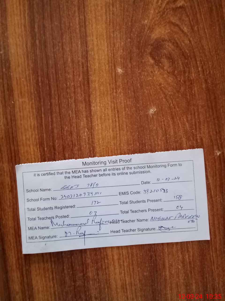 | EMIS Code: 39210573 | Name of School: GGES CHAK NO. 78/D | |||