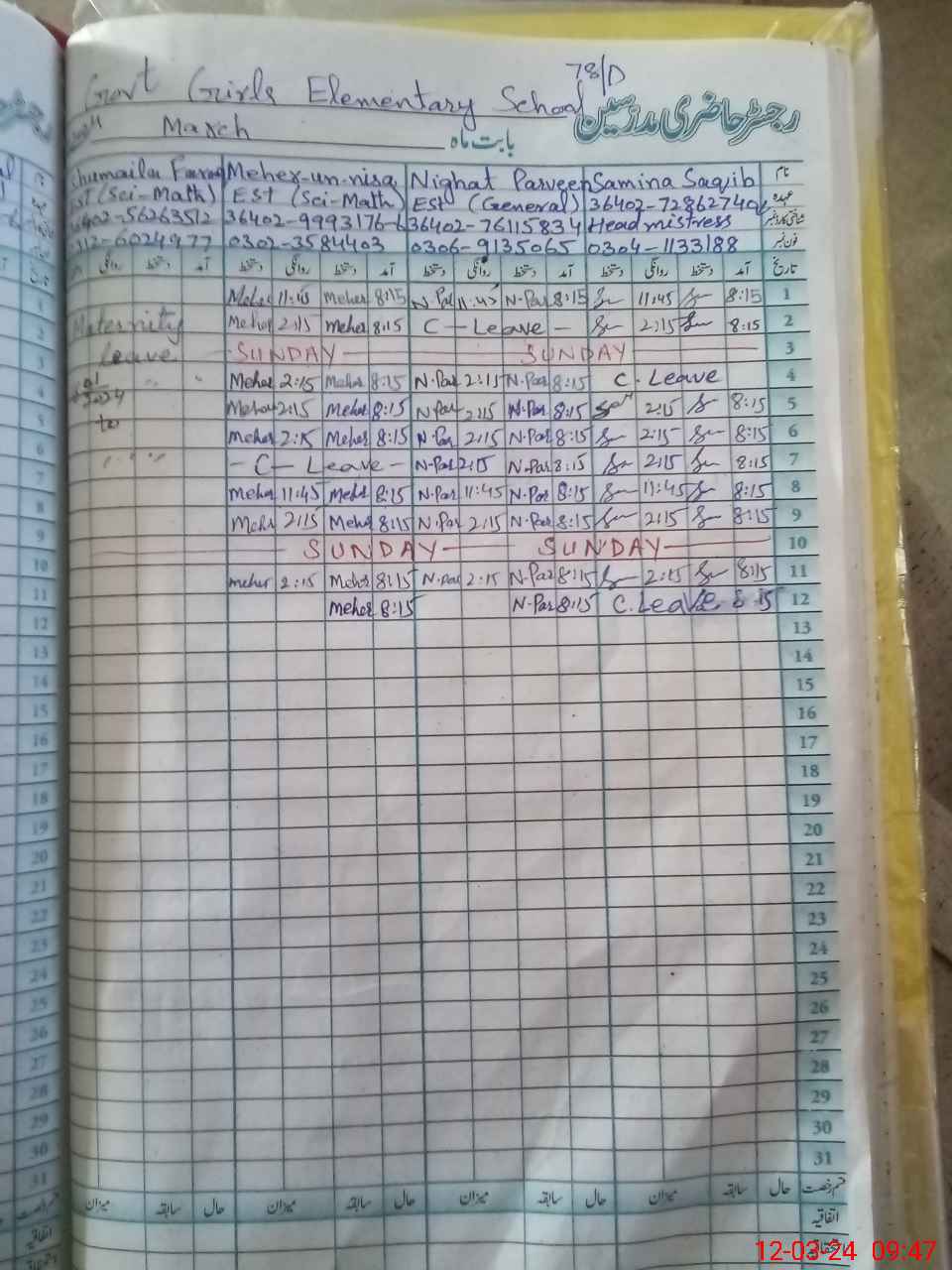 | 36**** | Sh**** Fa**** | 1 | 12 | 0 | 0 | 12 | 0 | 0 | 0 | 0 | 0 | Maternity | |