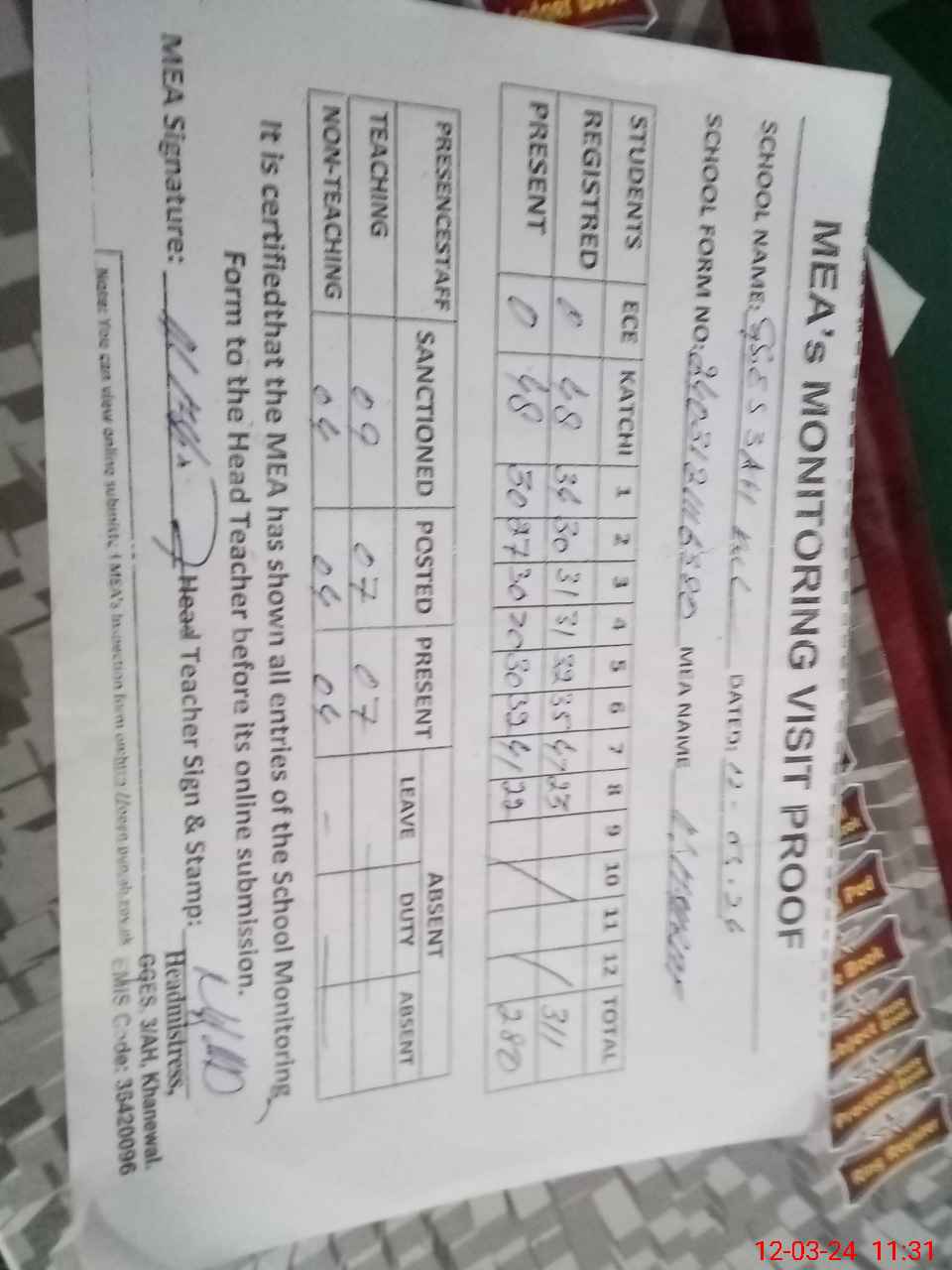 | EMIS Code: 36420096 | Name of School: GGES 3/AH, KHANEWAL | |||