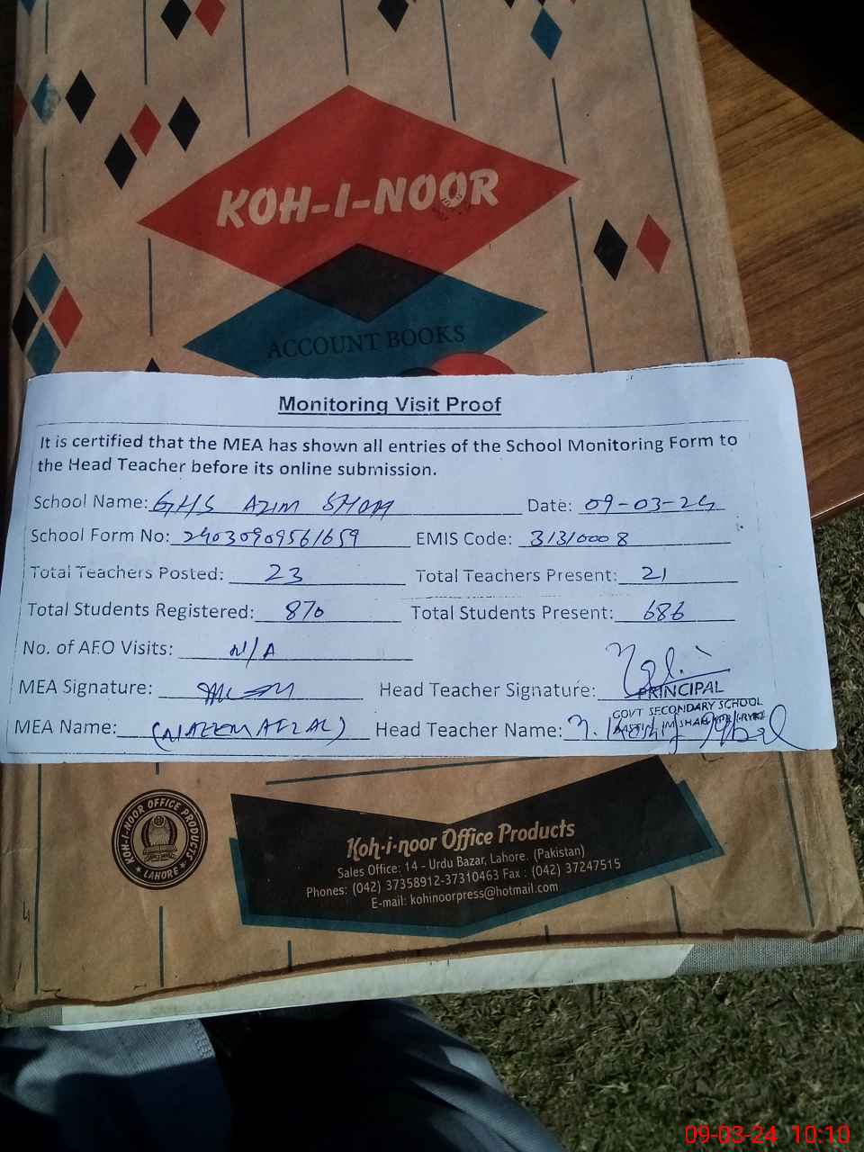 | EMIS Code: 31310008 | Name of School: GHS BASTI AZIM SHAH | |||