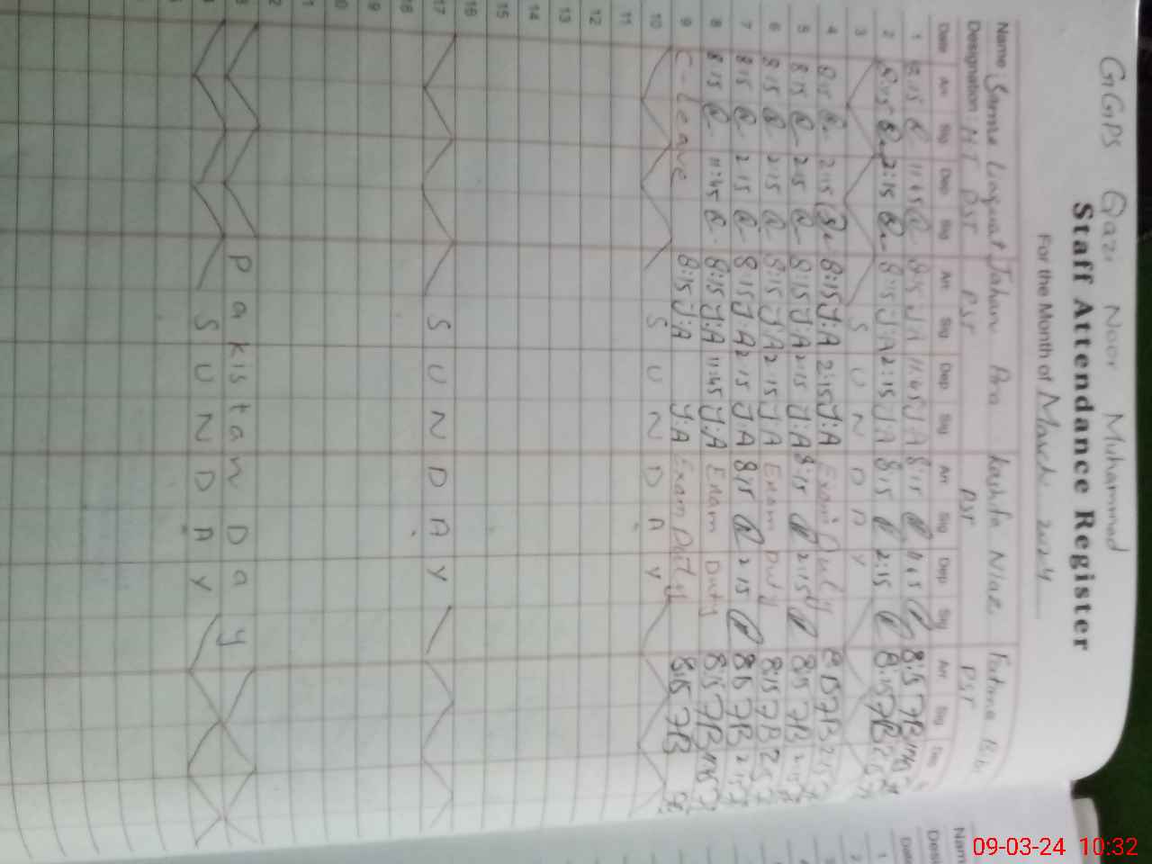 | 31**** | Ka**** Ni**** | 1 | 1 | 0 | 0 | 0 | 0 | 0 | 0 | 0 | 0 | 0 | Exam Duty |