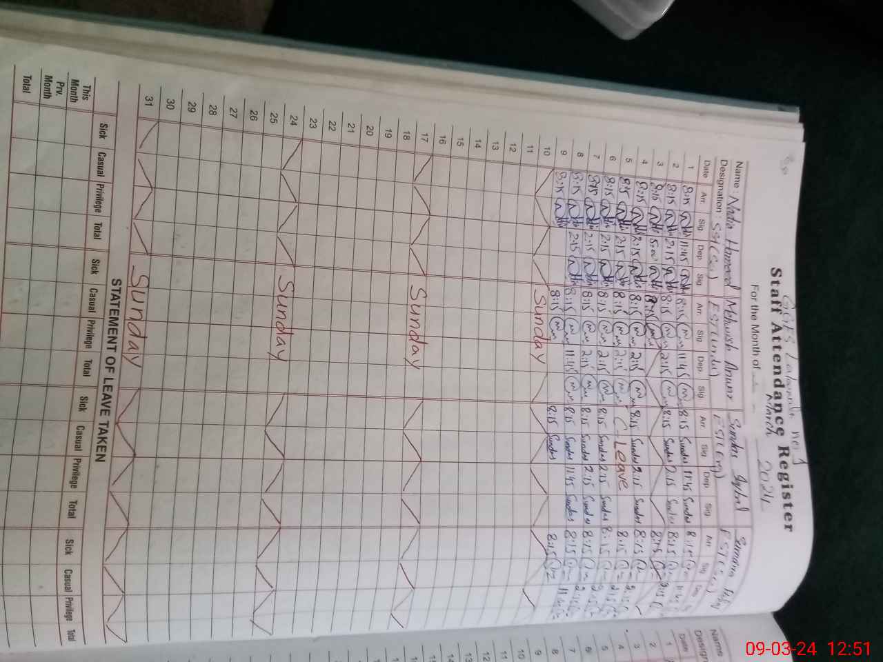 | 31**** | Fa**** Na**** | PST | Regular | 0 | 0 | 0 | 0 | 0 | 0 | 0 | 0 | 0 | Exam Duty |