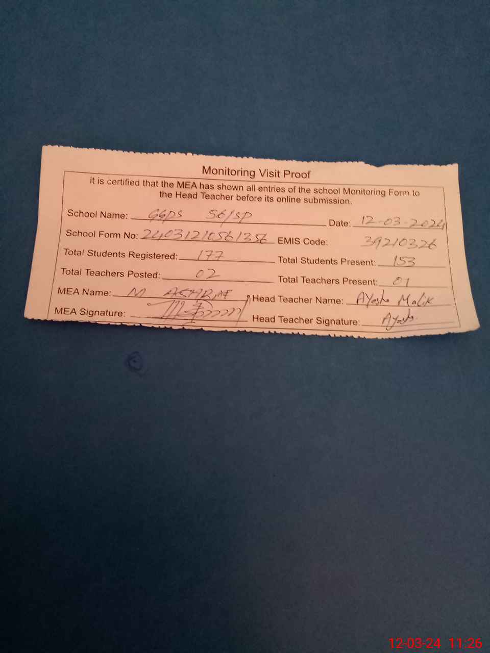 | EMIS Code: 39210326 | Name of School: GGPS 56 SP | |||