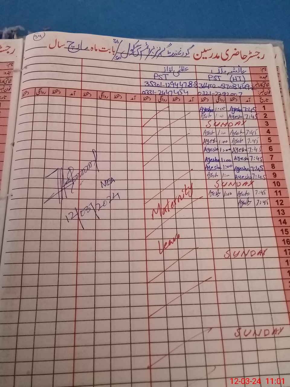 | Name: Uz**** Na**** Designation: (School Headmaster's/Headmistress's) PST Phone/Cell Number: 03**** |