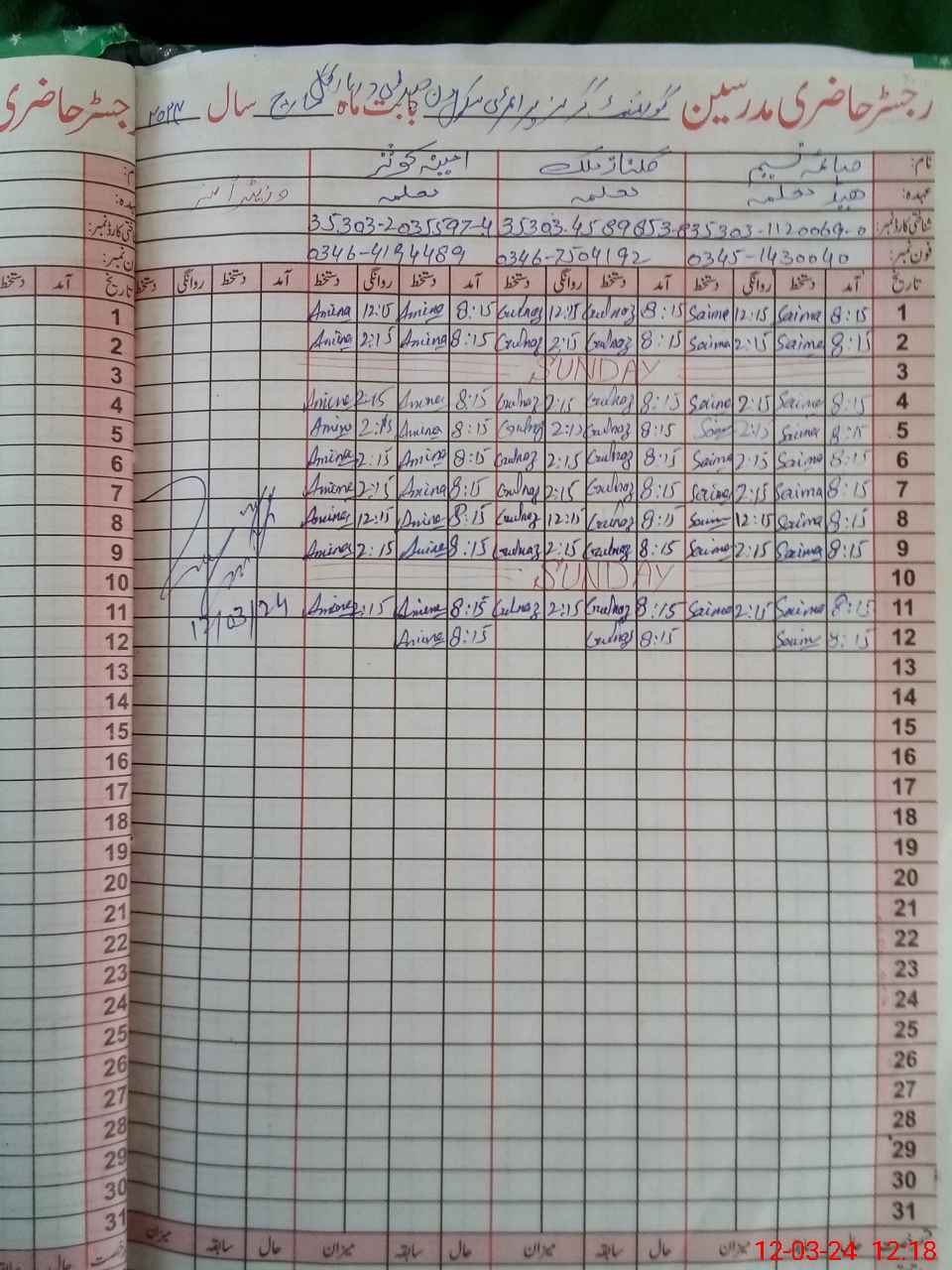 | CNIC | Full Name | Designation | R/C | Absence During Last Calender Month |