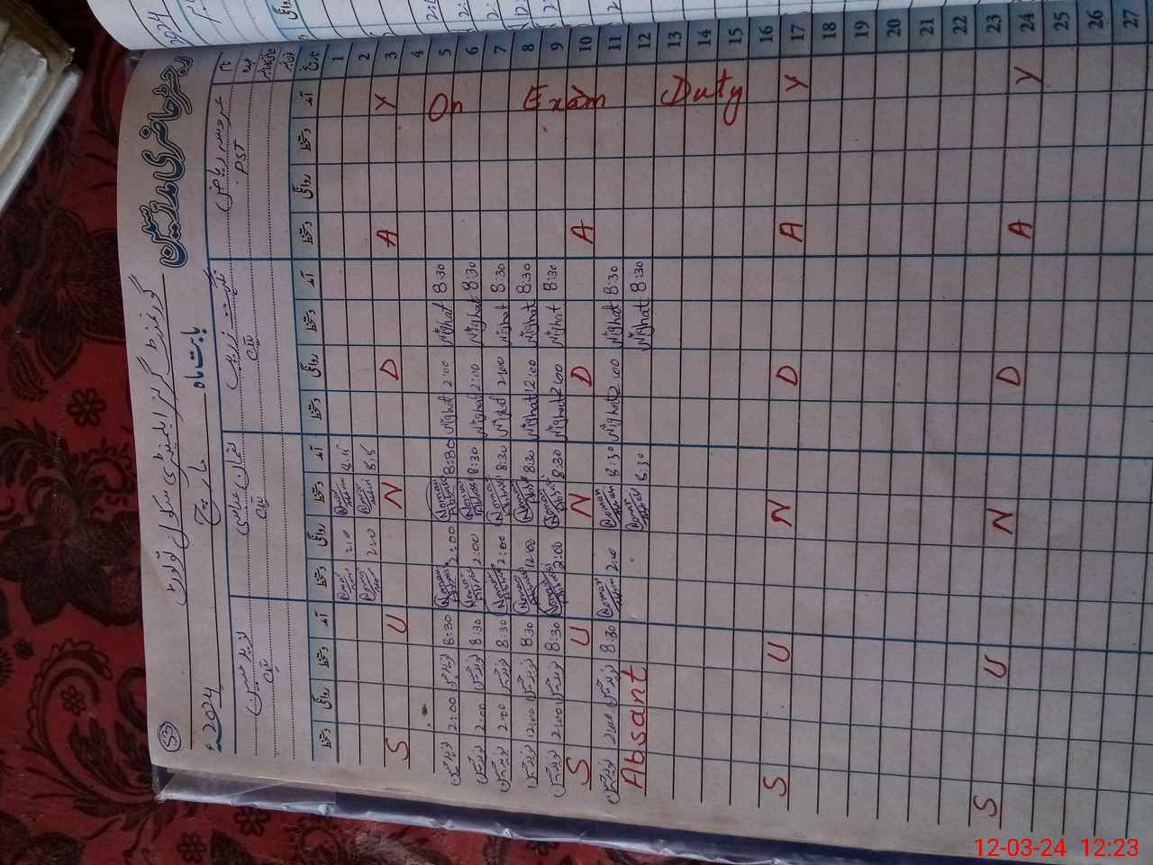 | 37**** | Ur**** Ri**** | 1 | 1 | 0 | 0 | 0 | 0 | 0 | 0 | 0 | 0 | 0 | Exam Duty |