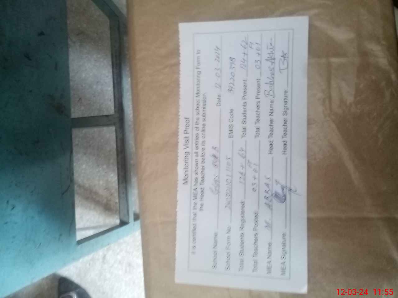 | Attendance Register | Head Teacher | MEA with School | Visit Proof |