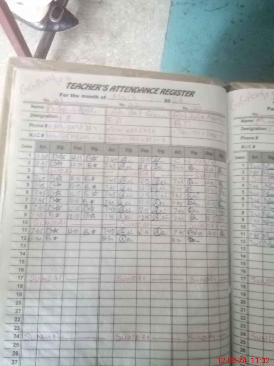 | Name: BA**** AK**** Designation: (School Headmaster's/Headmistress's) PST Phone/Cell Number: 03**** |