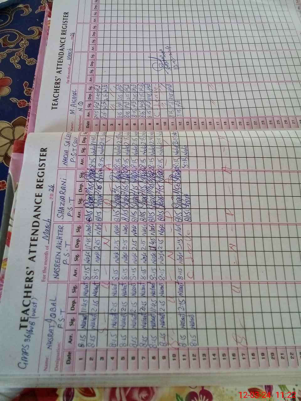 | CNIC | Full Name | Designation | R/C | Absence During Last Calender Month |