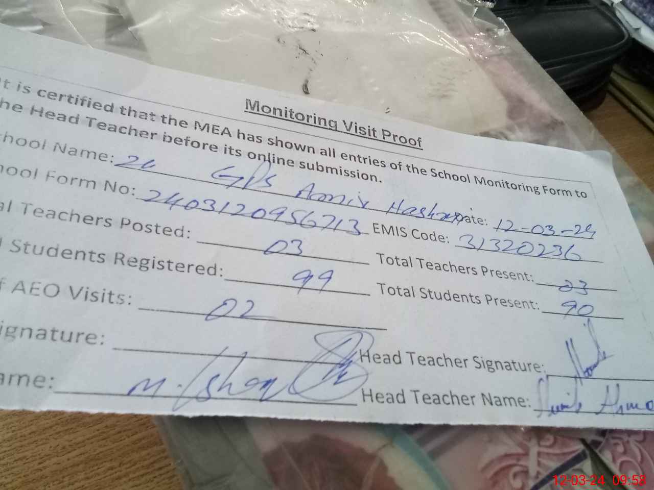 | EMIS Code: 31320236 | Name of School: GPS AMIR AHMAD HASHMI | |||
