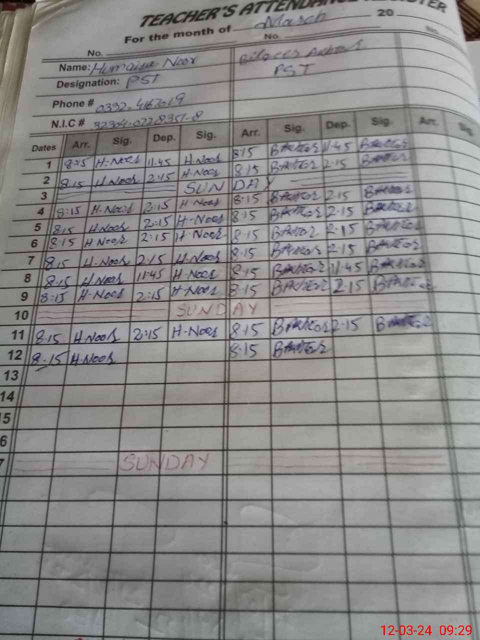 | Name: Bi**** Ak**** Designation: (School Headmaster's/Headmistress's) PST Phone/Cell Number: 03**** |