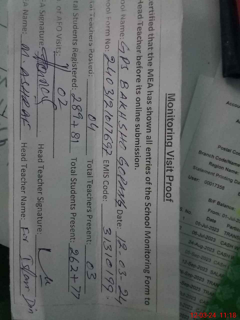 | EMIS Code: 31310199 | Name of School: GPS BAKHSHO GOPANG (After Noon) | |||