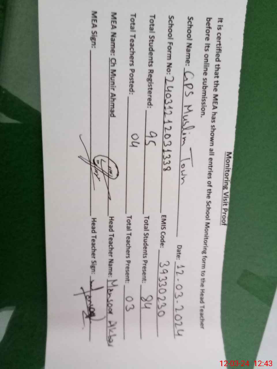 | EMIS Code: 39330230 | Name of School: GPS MUSLIM TOWN RENALA KHURD | |||