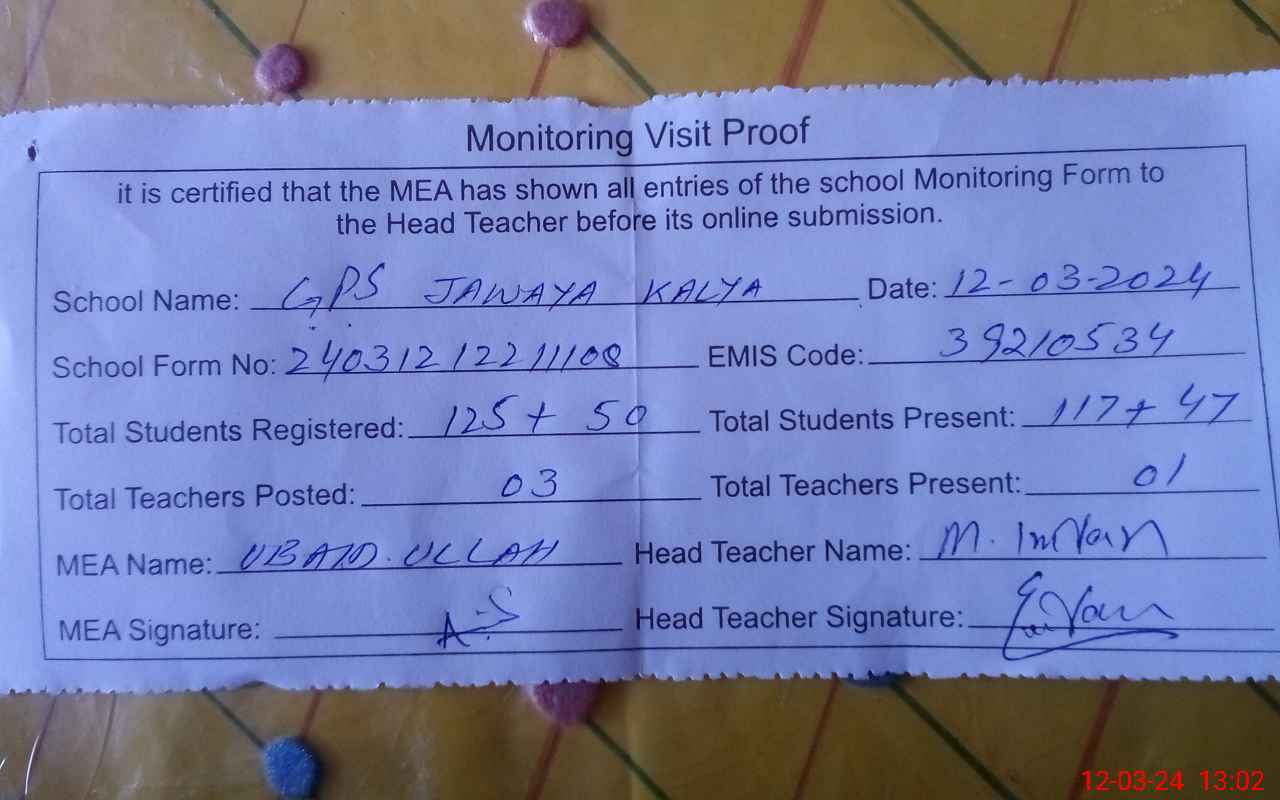 | EMIS Code: 39210534 | Name of School: GPS JAWAYAKALYA | |||