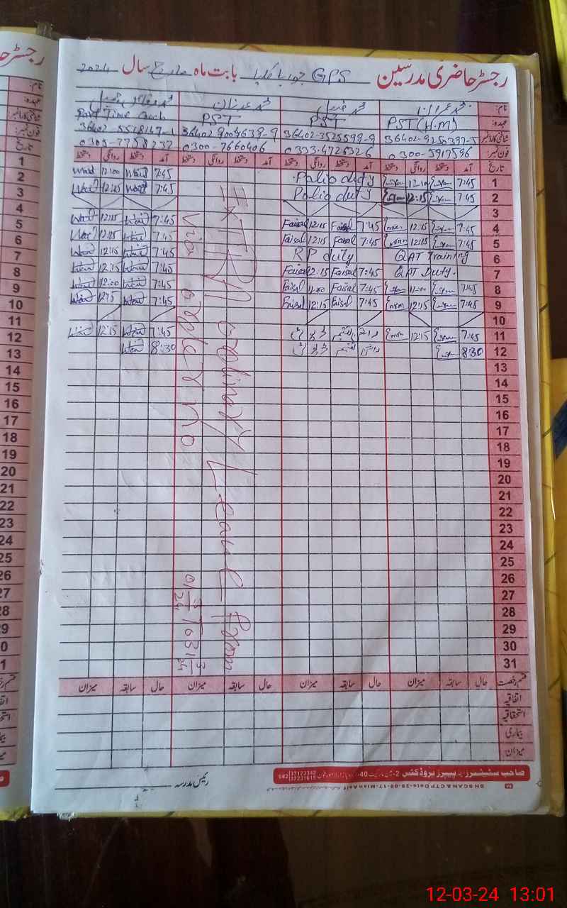 | Name: MU**** Fa**** Designation: (School Headmaster's/Headmistress's) PST Phone/Cell Number: 03**** |