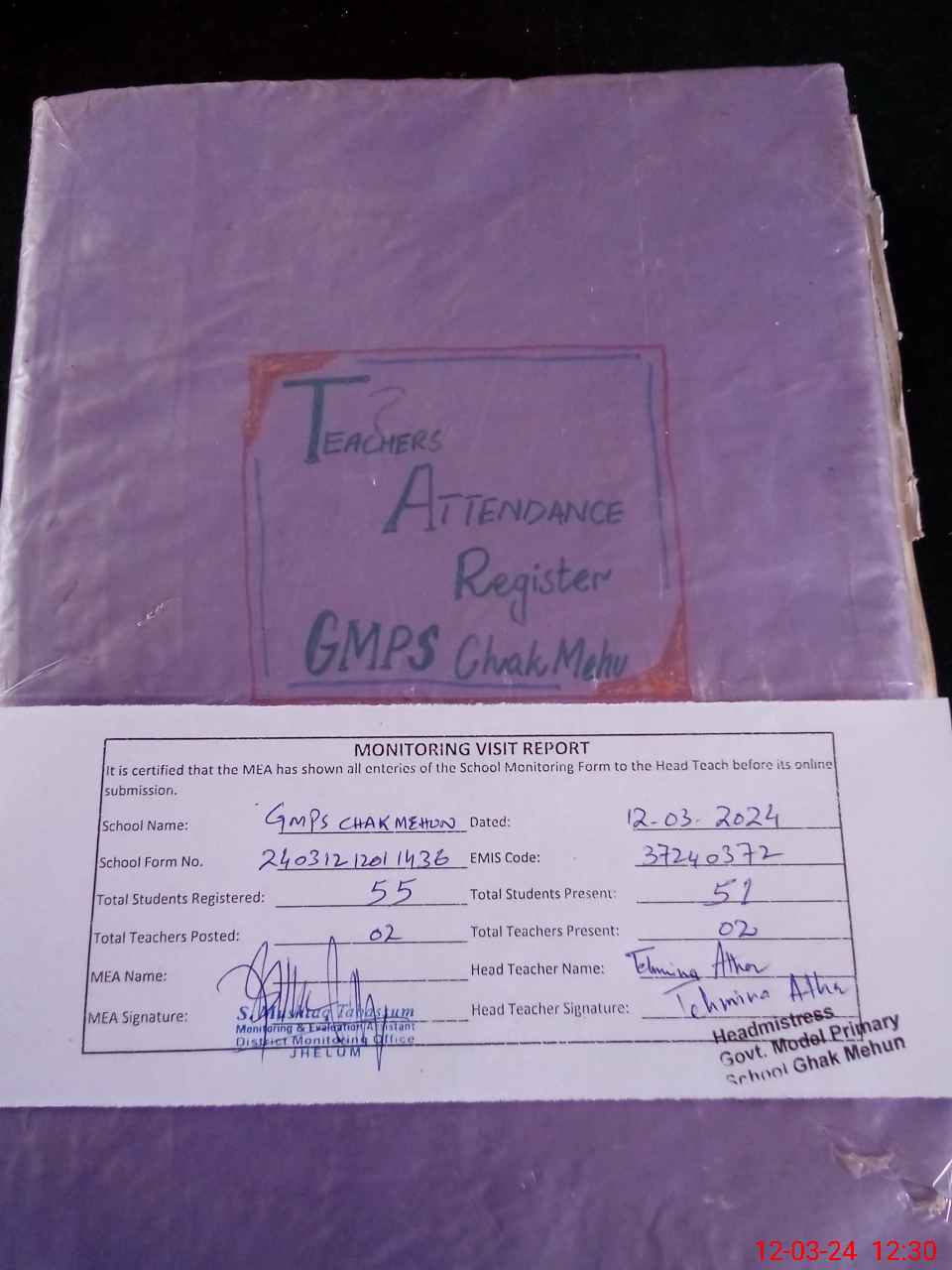 | EMIS Code: 37240372 | Name of School: GMPS CHAK MEHUN | |||