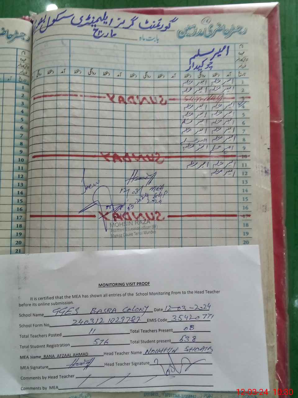 | Attendance Register | Head Teacher | MEA with School | Visit Proof |