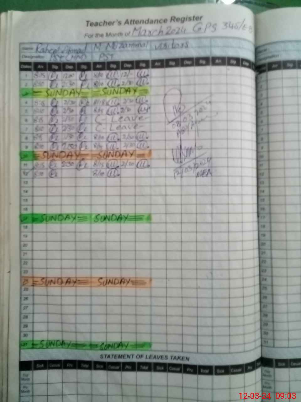 | Name: RA**** AH**** Designation: (School Headmaster's/Headmistress's) PST Phone/Cell Number: 03**** |