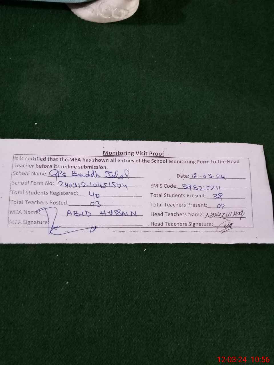 | EMIS Code: 39320211 | Name of School: GPS BUDDH JALAL | |||