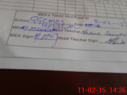 | Attendance Register | Head Teacher | MEA with School | Visit Proof |