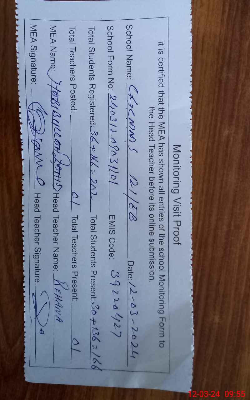 | Certified that this School was Inspected by the Undersigned MEA/DMO Today and the Information Stated Above is as Per Record. | |||||