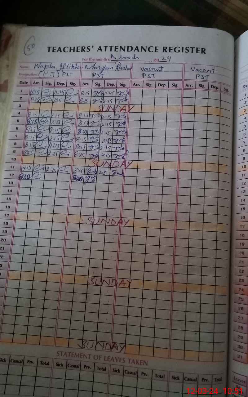 | Name: Wa**** IF**** Designation: (School Headmaster's/Headmistress's) PST/PTC/JV Phone/Cell Number: 03**** |