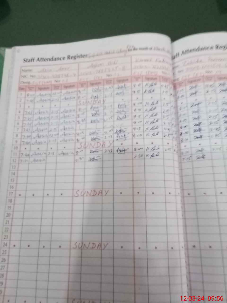 | CNIC | Full Name | Designation | R/C | Absence During Last Calender Month |