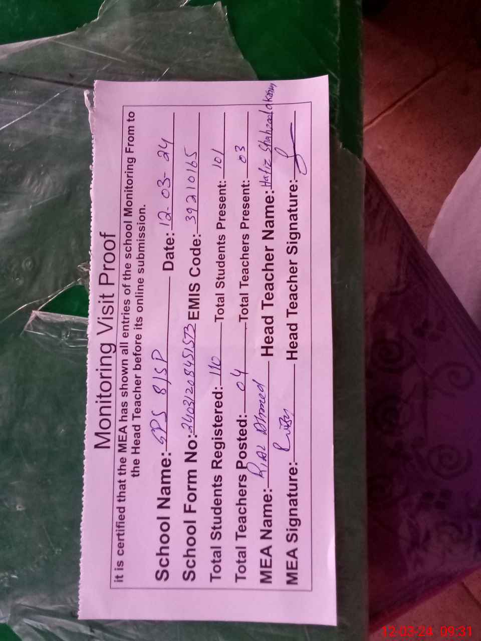 | EMIS Code: 39210165 | Name of School: GPS 8 SP | |||